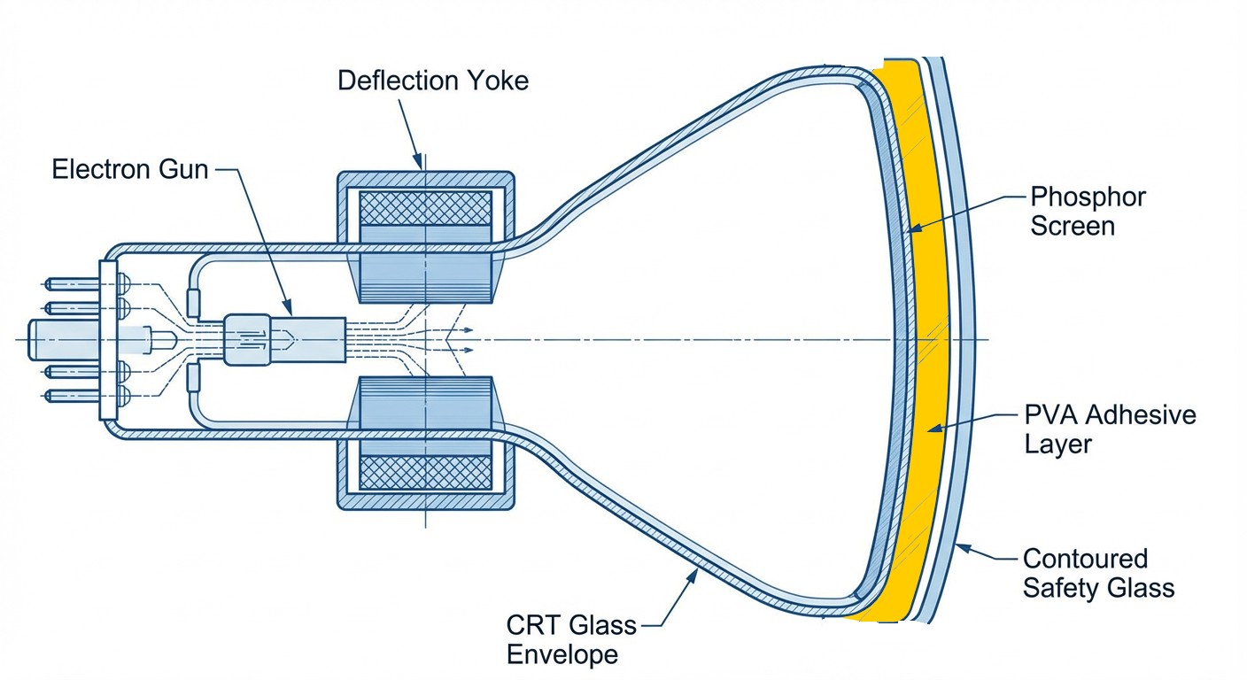 - Chopsticks — their wedge shape makes them ideal for applying measured pressure between the CRT and the safety glass.