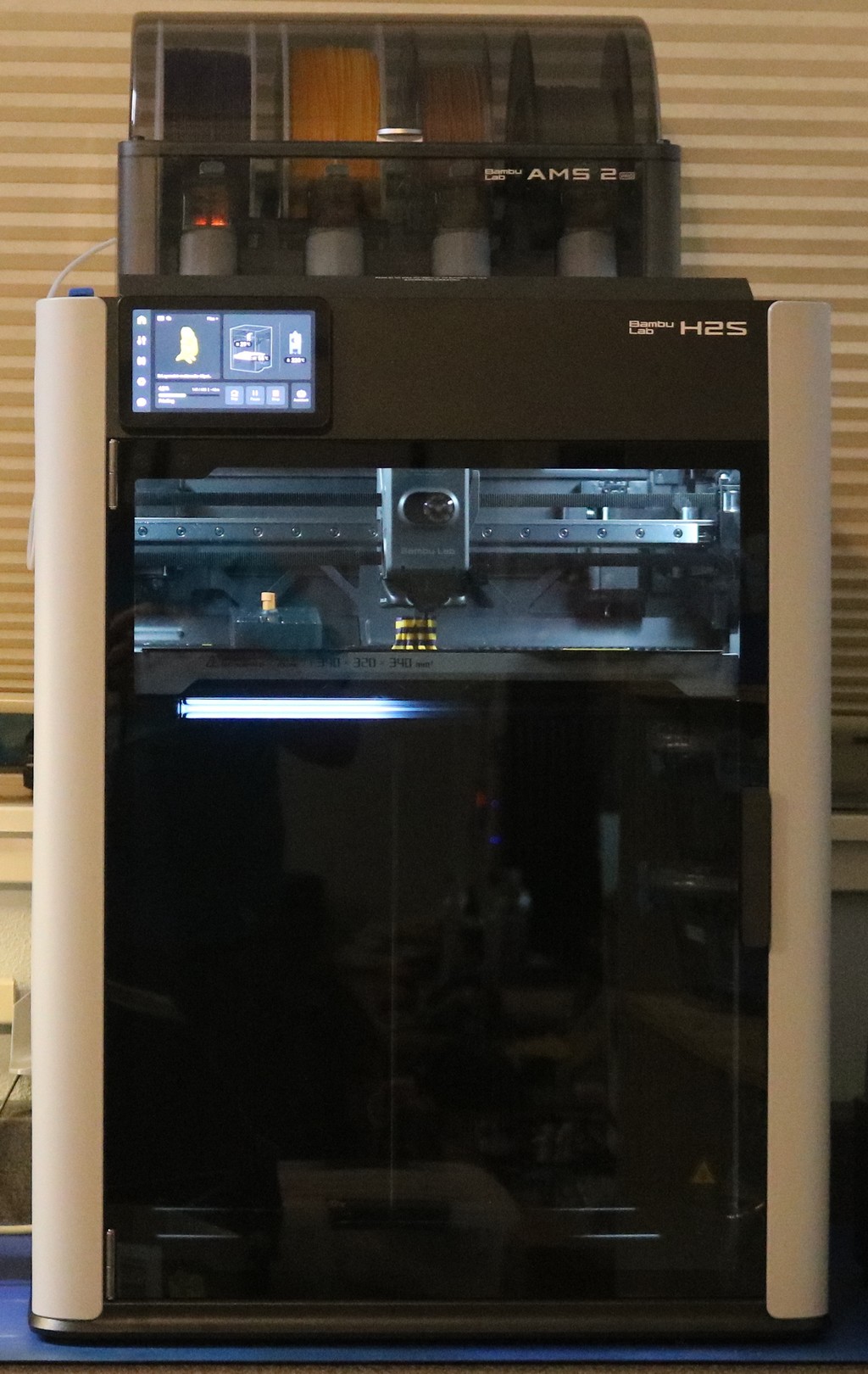 As you can see, it’s a much larger printer — not just the build volume, but also the AMS 2 sitting on top.
